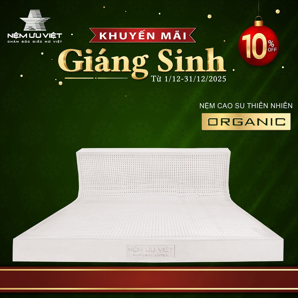 • Nệm cao su thiên nhiên ORGANIC: giảm 10% giá niêm yết.