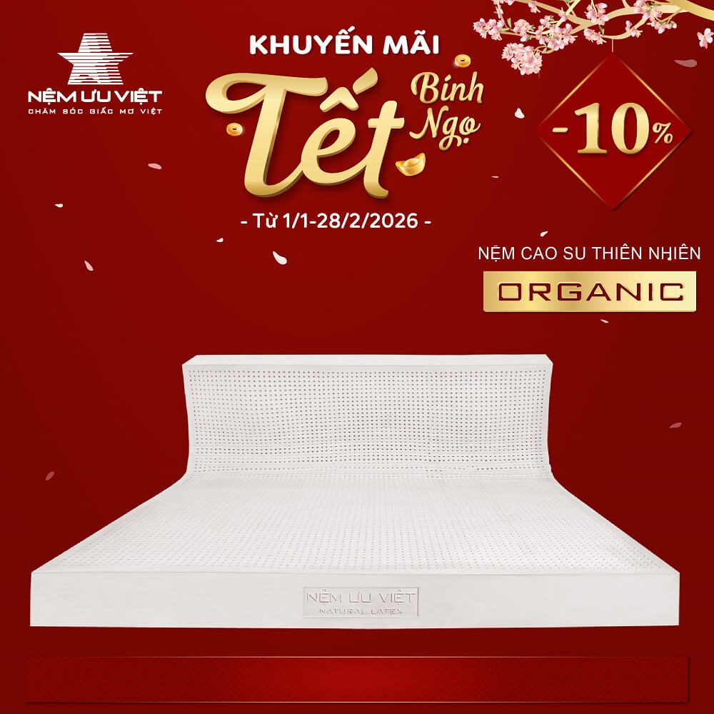 - Nệm cao su thiên nhiên ORGANIC: giảm 10% giá niêm yết.