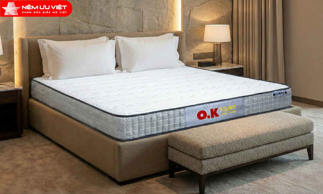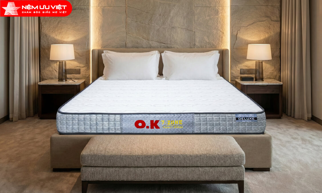 Nệm lò xo túi OK 7 vùng của Nệm Ưu Việt được ra mắt từ năm 1995, sản phẩm đón nhận được sự đánh giá cao và yêu thích của đông đảo khách hàng và trở thành một trong những sản phẩm bán chạy nhất của Nệm Ưu Việt trong nhiều năm qua.