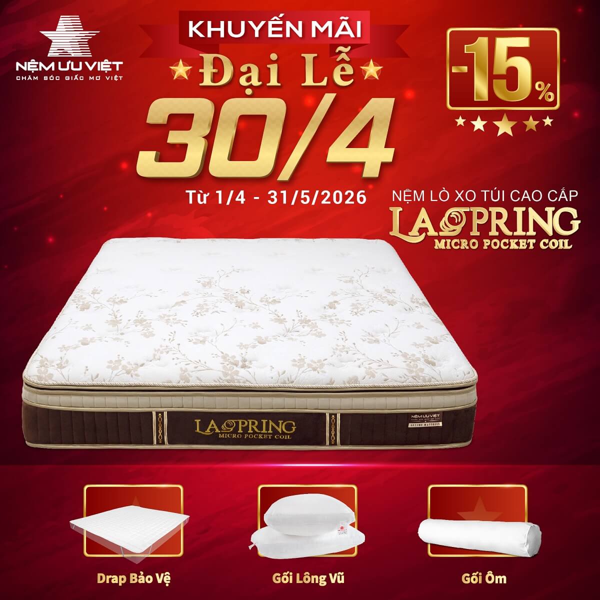 Mọi chi tiết cần được tư vấn thêm về sản phẩm, Quý khách chỉ cần gọi đến Nệm Ưu Việt hoặc để lại thông tin trực tuyến. Quý khách cũng có thể đến trực tiếp showroom Nệm Ưu Việt và đại lý Nệm Ưu Việt để trải nghiệm sản phẩm. Laspring chắc chắn sẽ mang đến Quý khách sản phẩm nệm đột phá cho giấc ngủ.