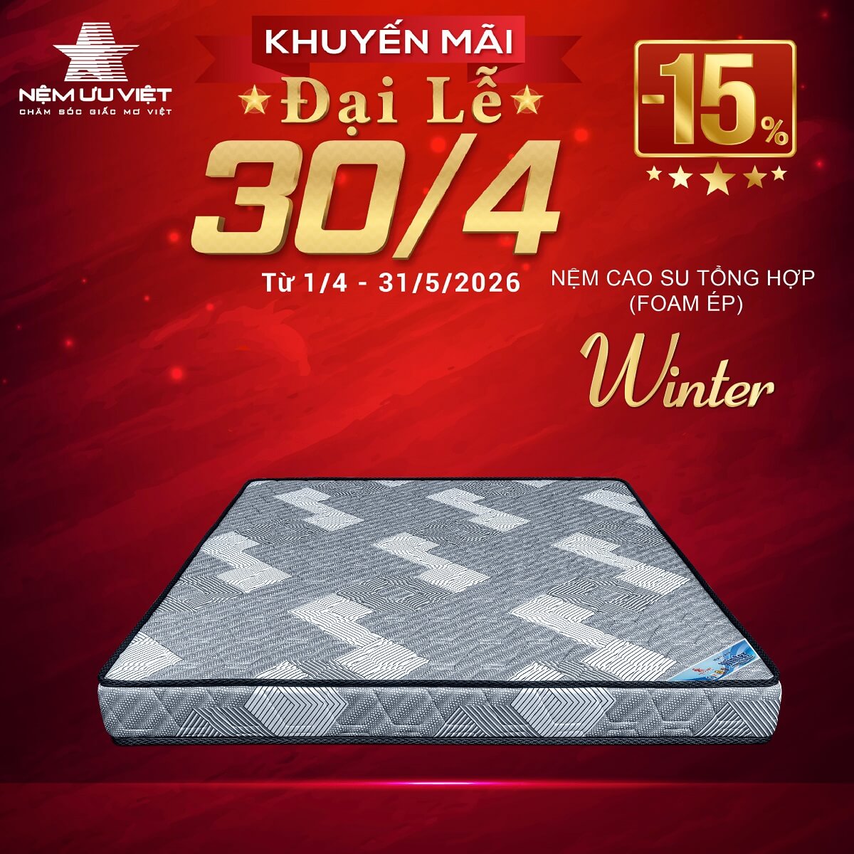 Nệm đang được Nệm Ưu Việt khuyến mãi 10% cùng quà tặng hấp dẫn vào từng chương trình trong năm, hãy liên hệ đến Nệm Ưu Việt ngay hôm nay để biết thêm chi tiết bạn nhé!